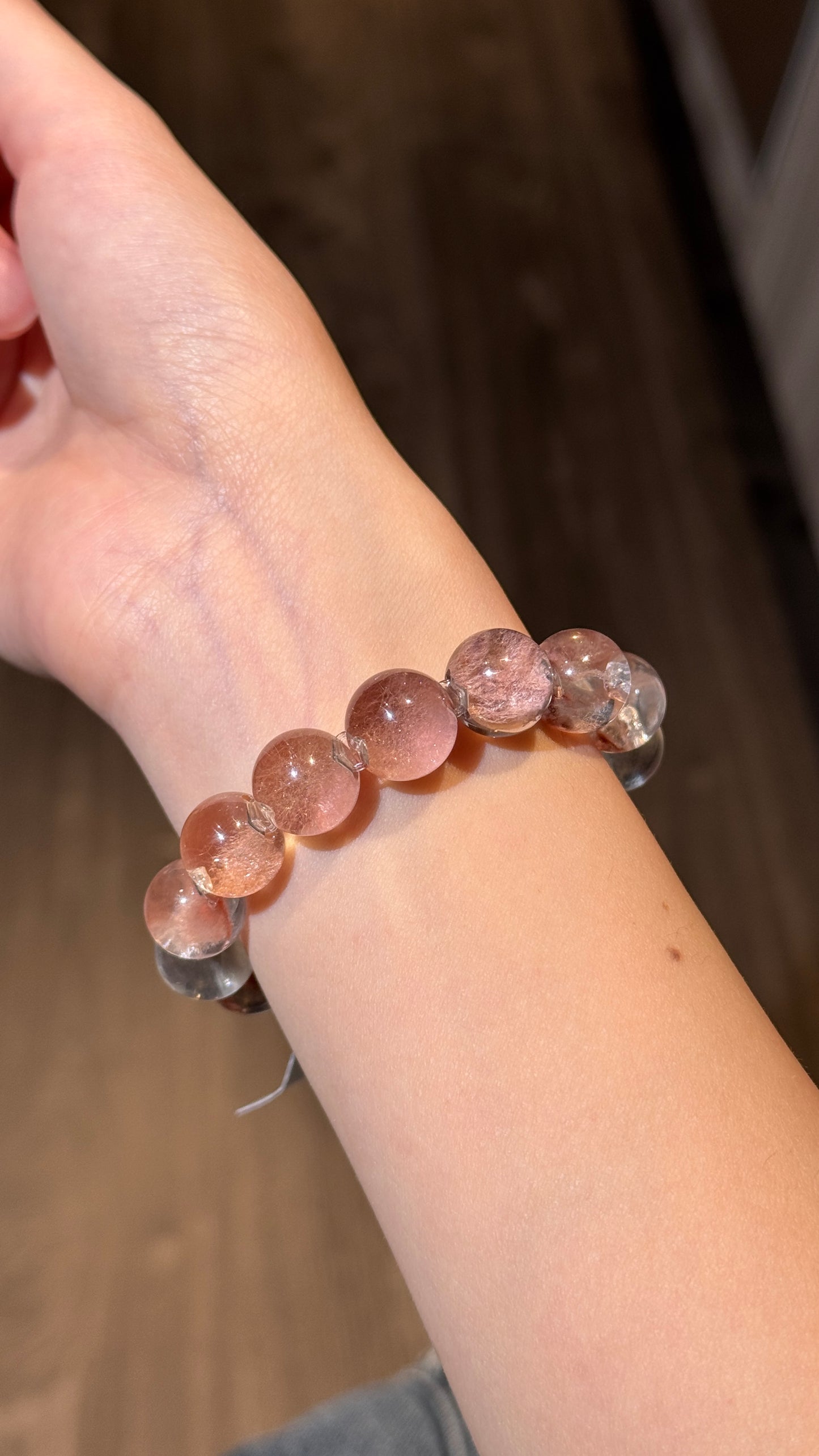 Rose-Pink Colorful Rabbit Hair Quartz 烟紫火焰兔毛15cm手围(12.7mm➕)