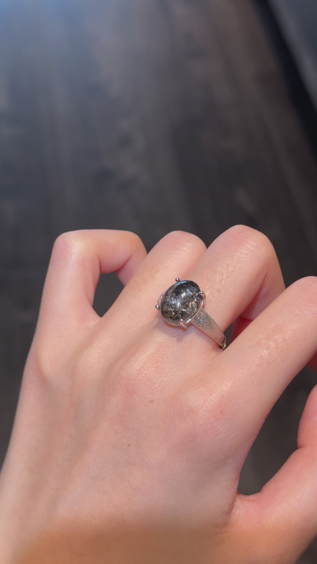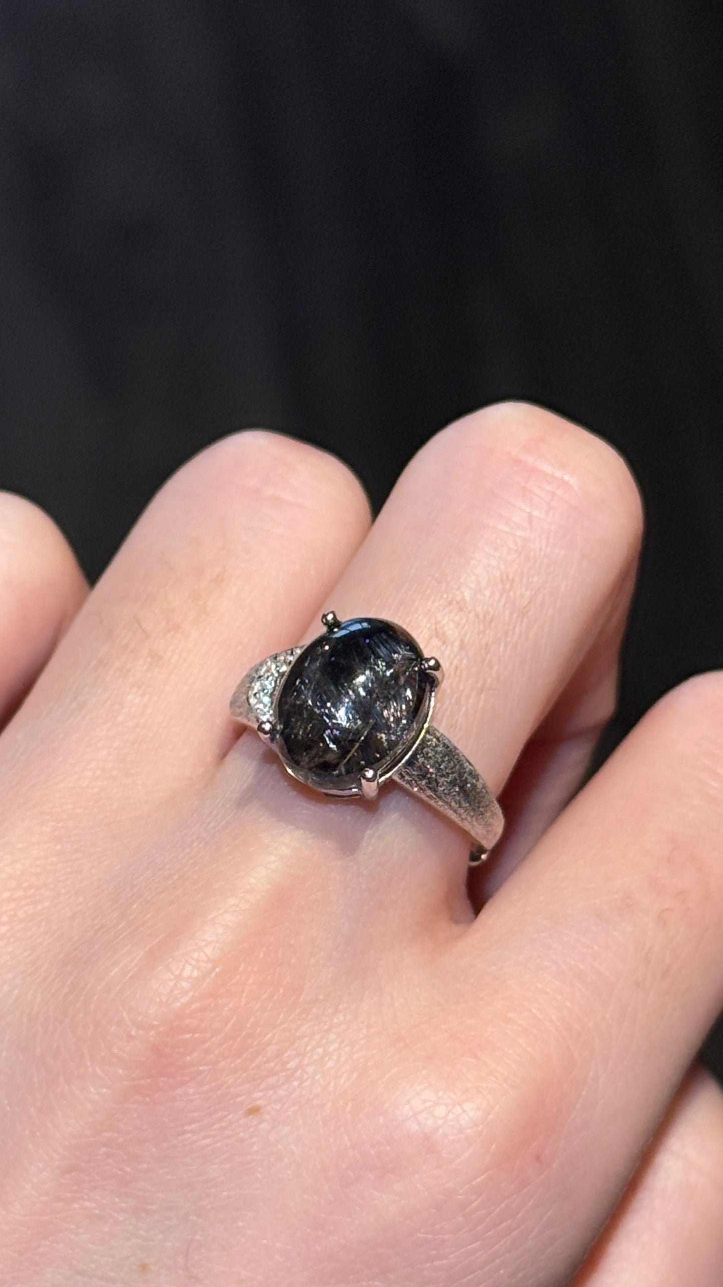 Black Silver Rutilated Quartz Ring in 925 Sterling Silver 纯黑黑银钛蛋面戒指(925银)